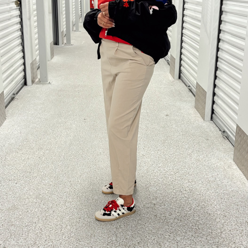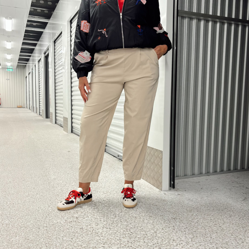 Denna version av Davina-byxor är moderna, tunna byxor i en mjuk och stretchig kvalitet som kombinerar komfort med en cool och avslappnad look. Byxorna har hög midja, veck framtill och en rundad silhuett, vilket ger en smickrande nederkant och en avslappnad passform. Det elastiska materialet säkerställer full rörelsefrihet och gör dem perfekta för både vardagsbruk och en mer elegant styling.