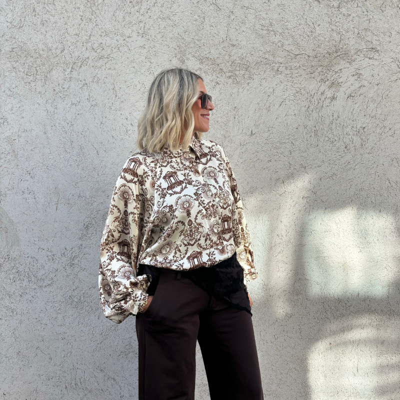 Mjuk mönstrad skjorta i viskos med ballong ärm!
