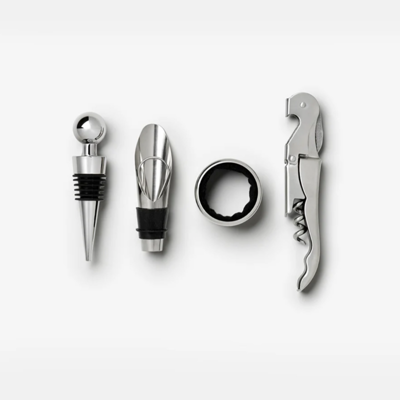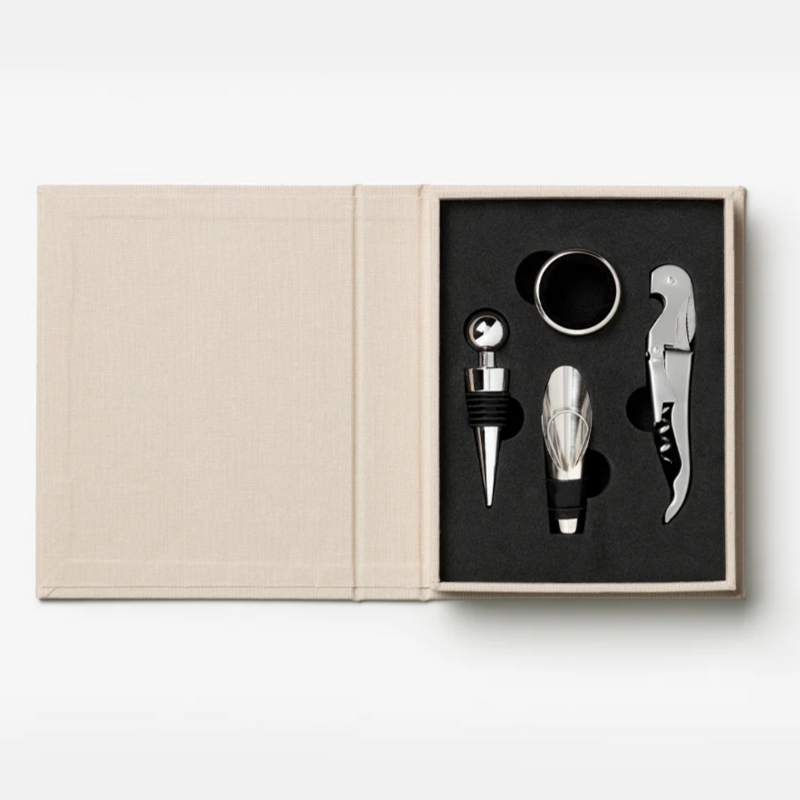 Upptäck det oumbärliga paketet för att fullända din vinupplevelse – en elegant verktygslåda i en bokliknande ask som är den perfekta gåvan att ta med sig. Alla produkter är tillverkade av rostfritt stål och tål maskindisk.